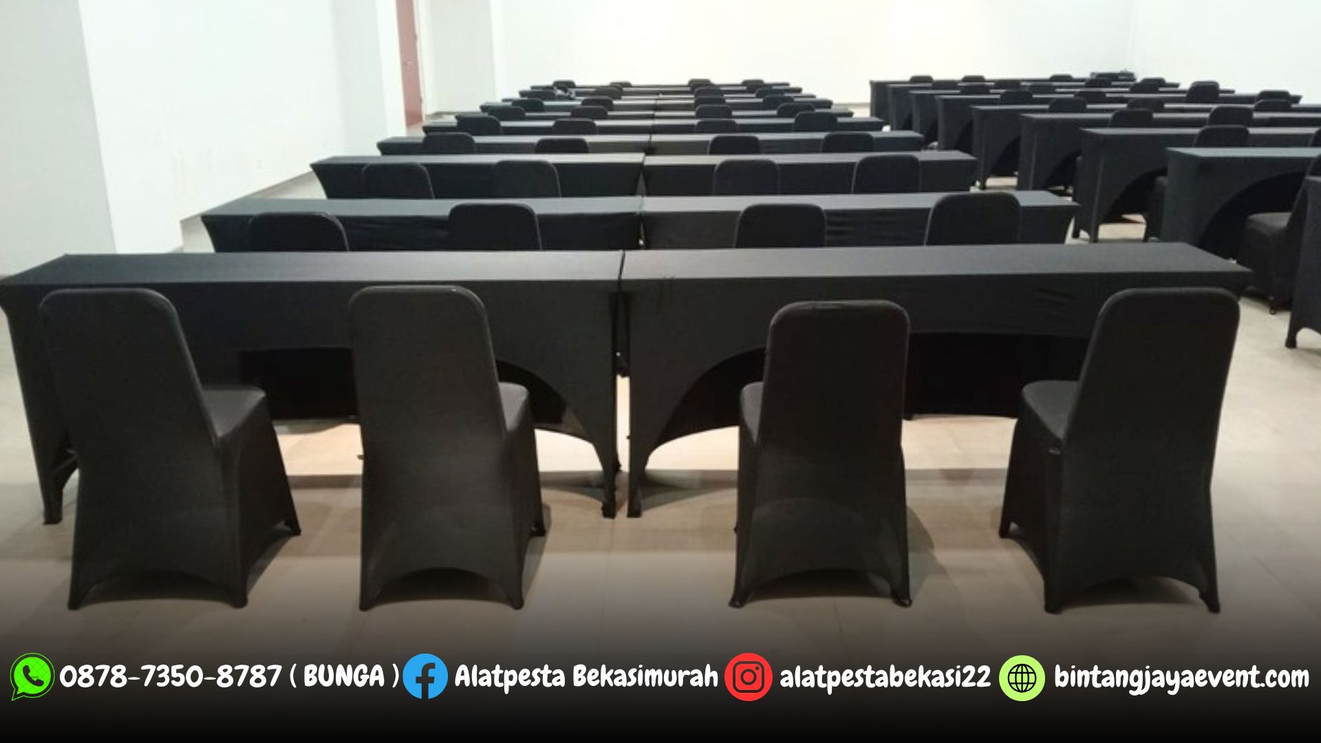 Sewa Meja IBM dan Kursi Futura Cover Ketat Hitam Area Jakarta (1)