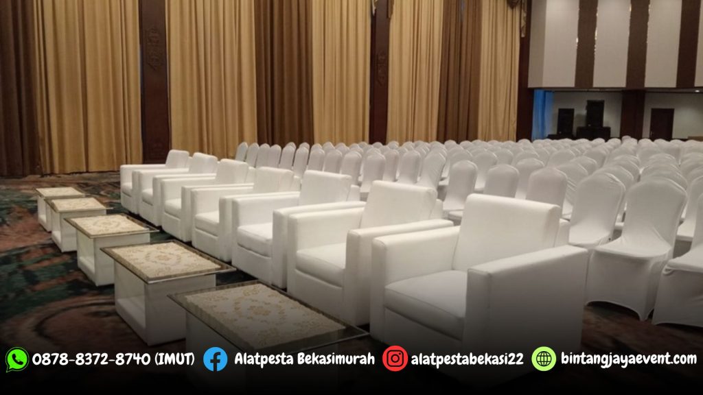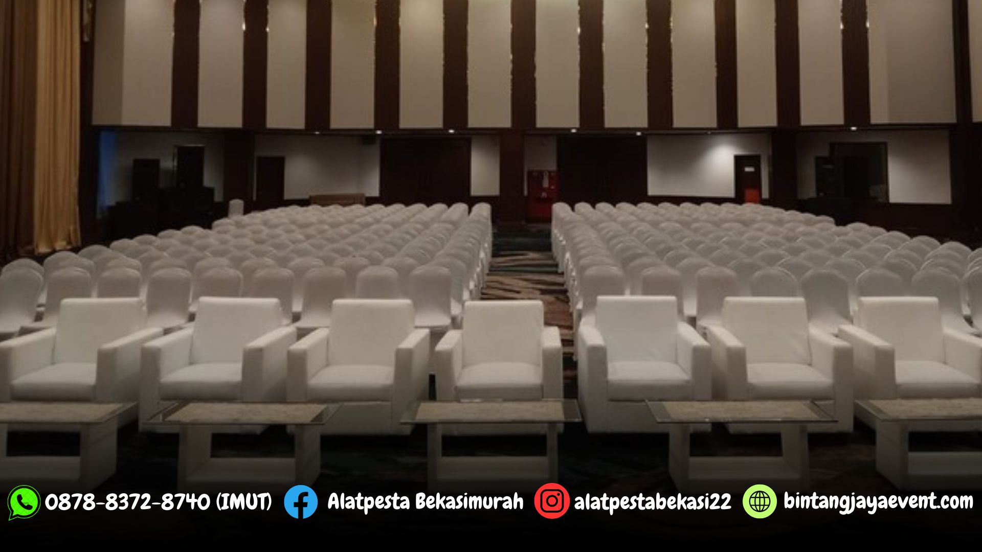 Pusat sewa alat pesta kami menyediakan Rental Sofa Putih Kotak Minimalis Area Depok dengan kualitas terbaik siap kirim dan setting langsung sesuai permintaan customer.