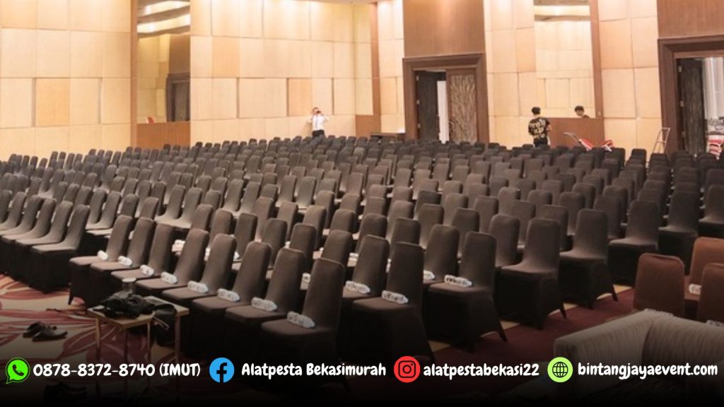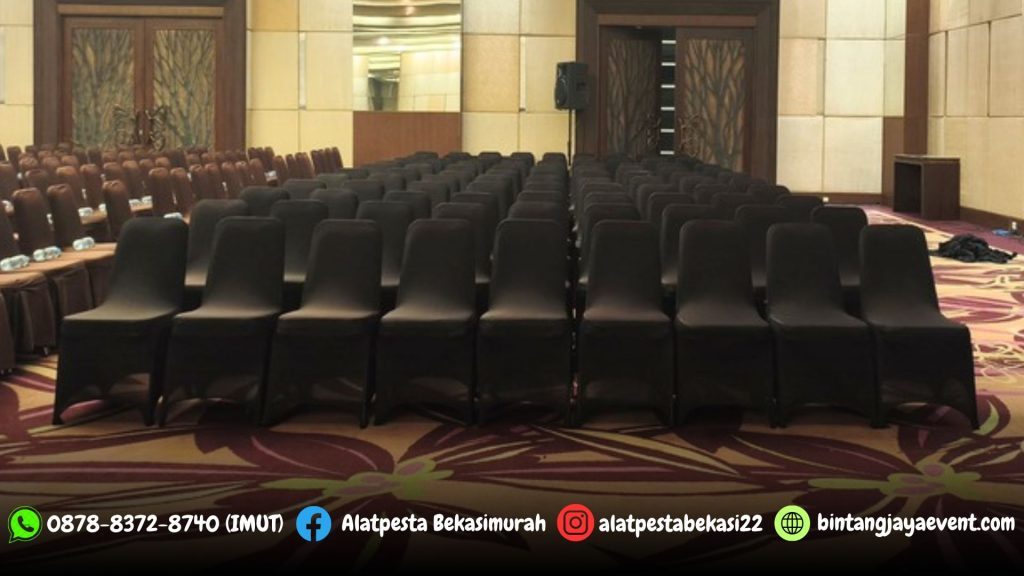 Jasa Sewa Alat Pesta Kami menyediakan Sewa Kursi Event Full Cover Hitam Event HI Jakarta dengan pengiriman dan pemasangan langsung sesuai permintaan customer.