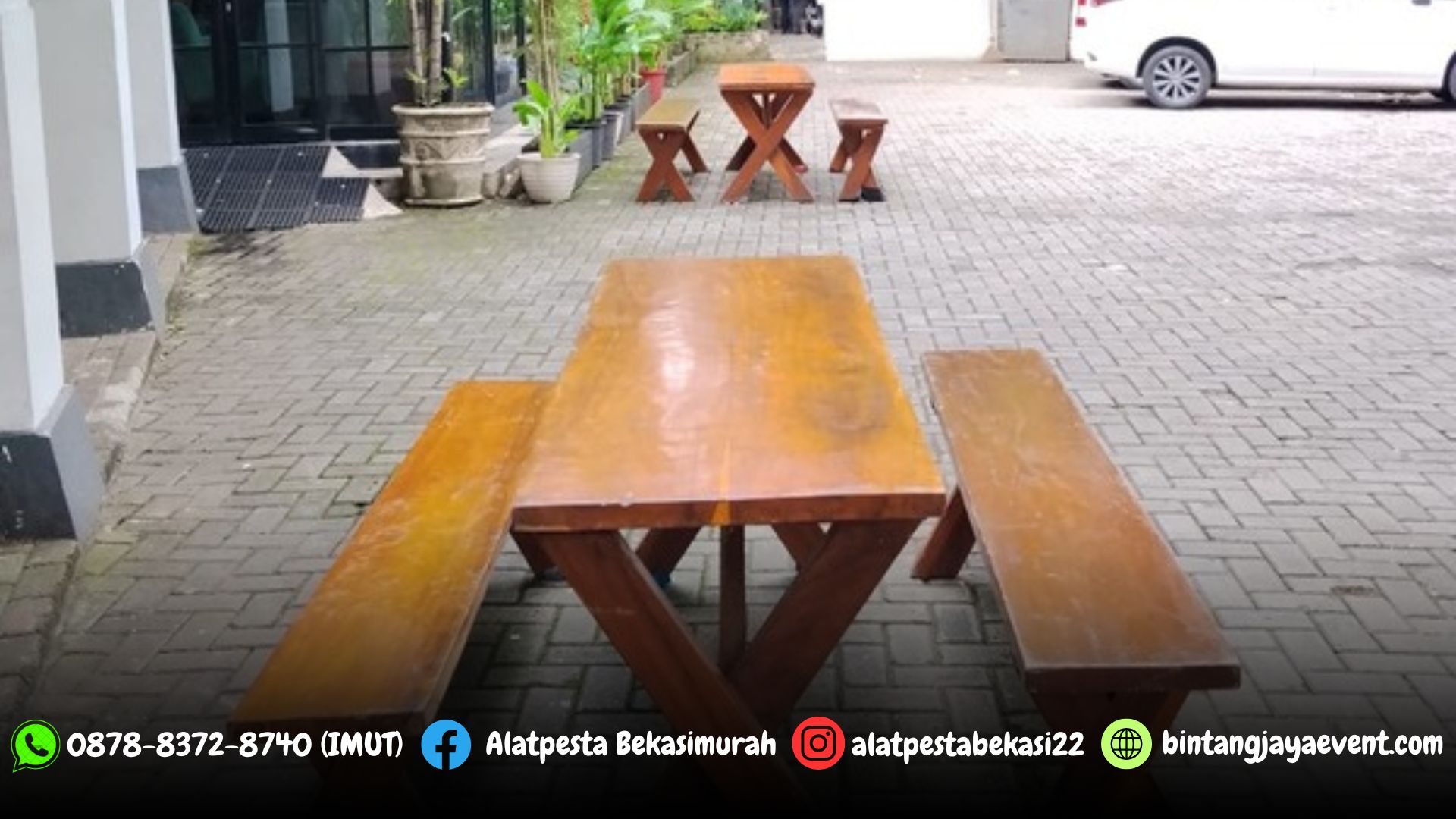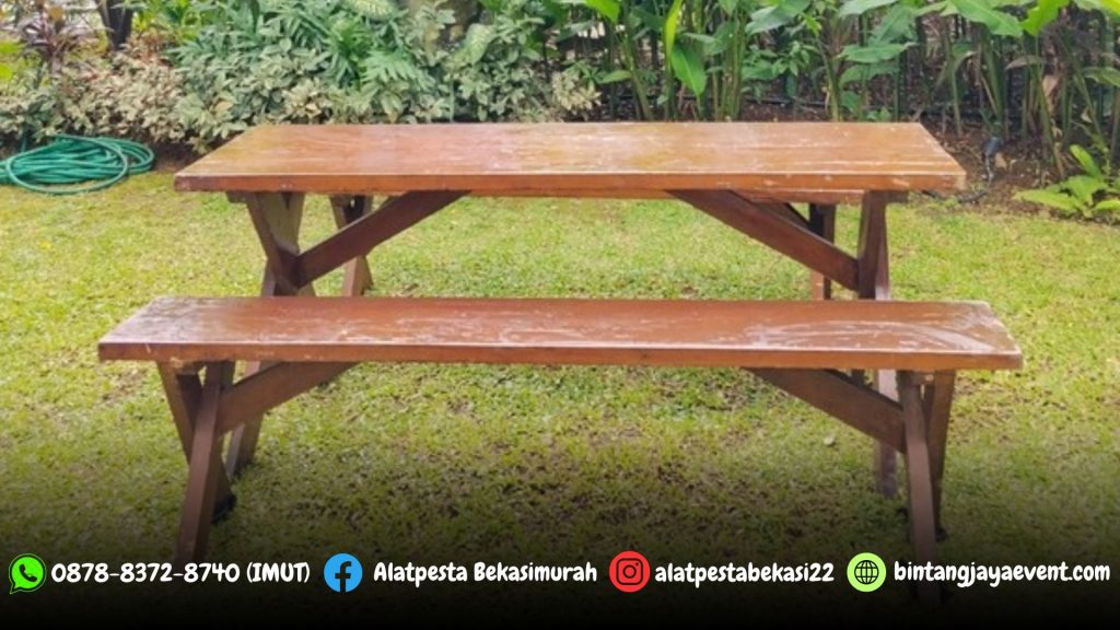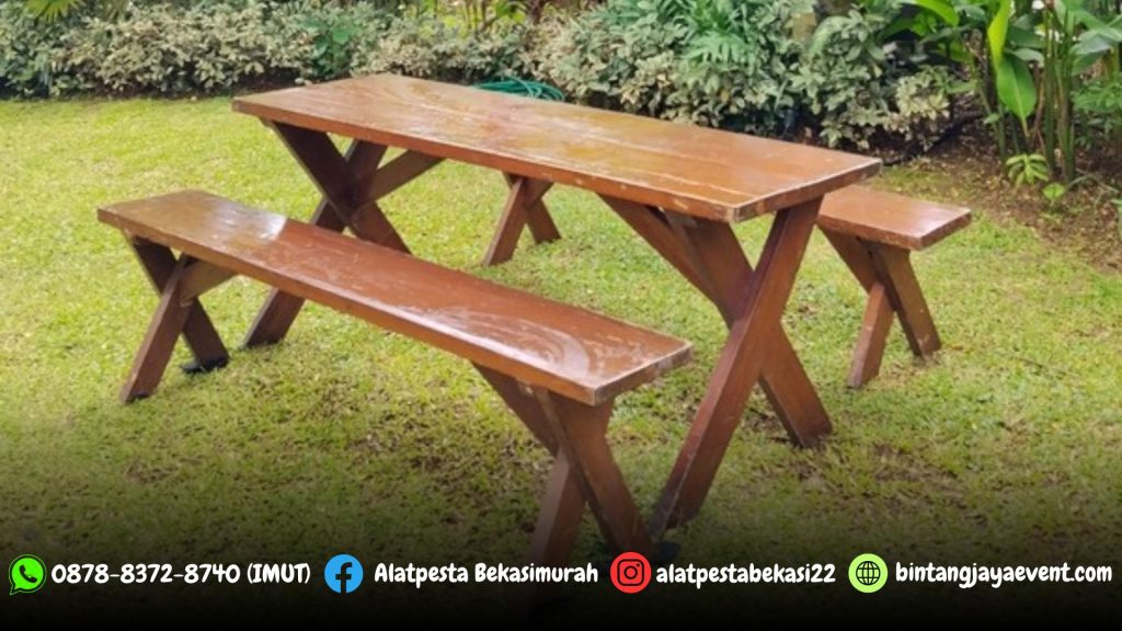 Pusat sewa alat pesta kami menyediakan Sewa Meja dan Kursi Taman Kayu Xtra Outdoor Bogor Jabar, meja kursi taman yang kami sewakan tentunya sudah memenuhi standar, dijamin kuat, kokoh, aman dan terpercaya.