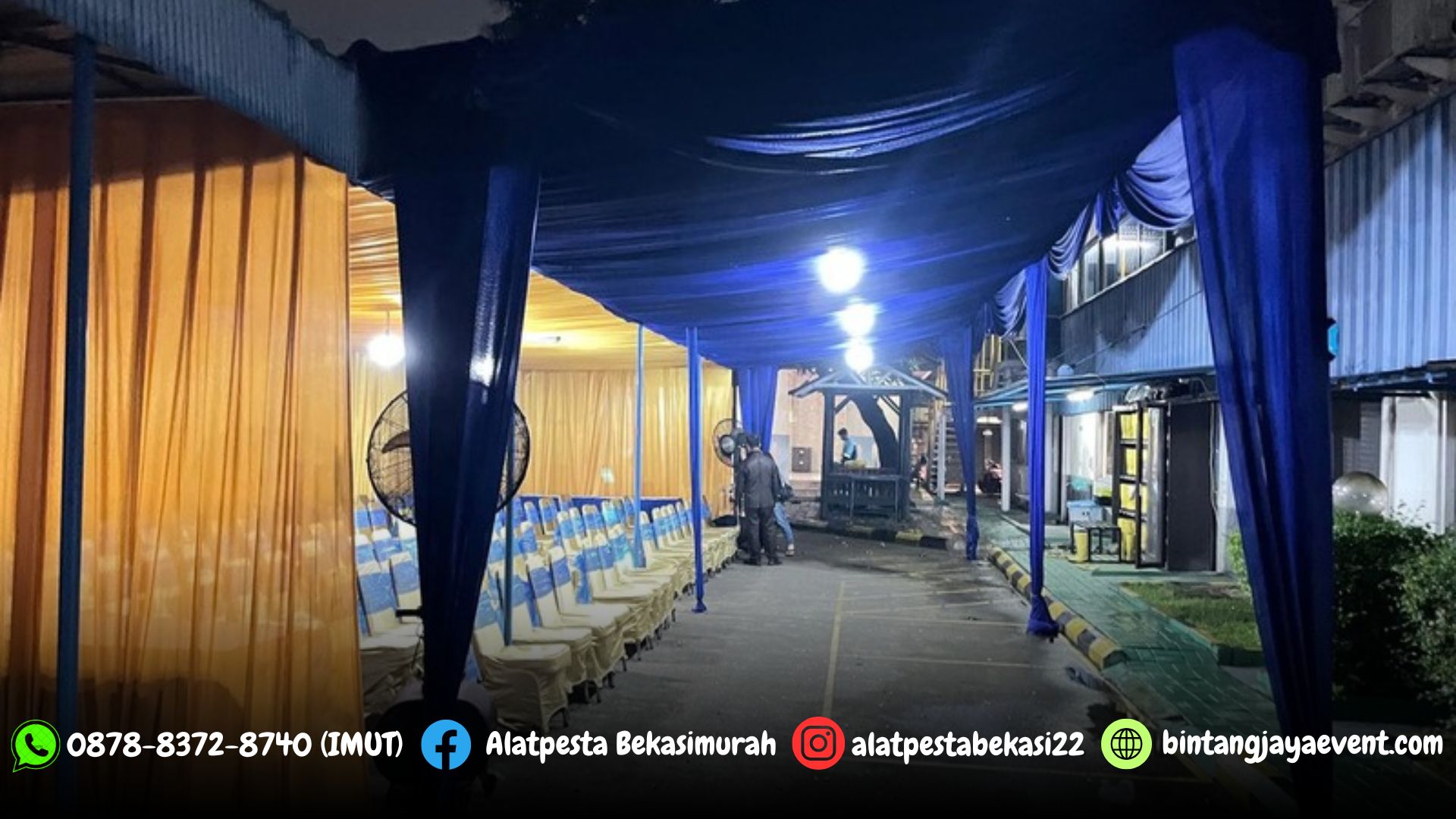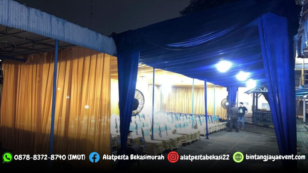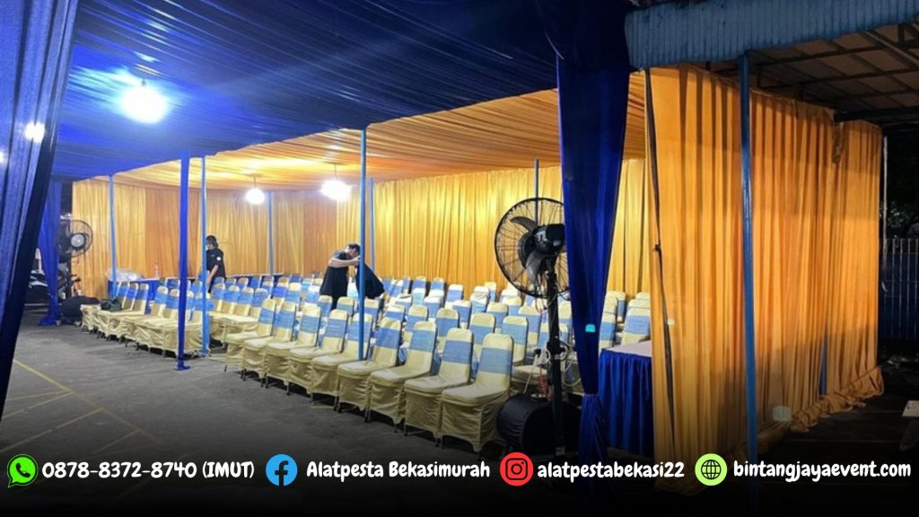 Sewa Tenda Dekorasi Serut Biru dan Gold Lengkap Kursi Futura
